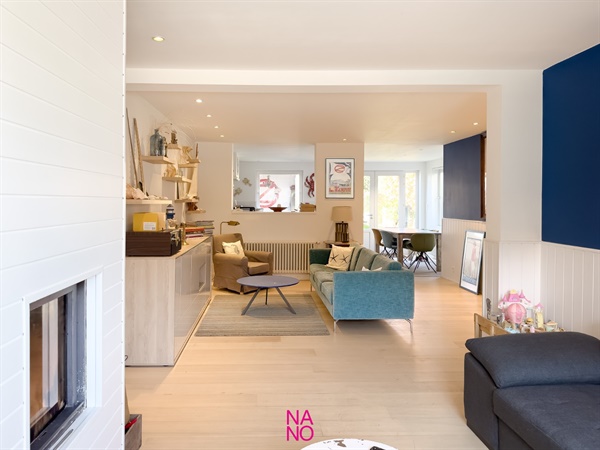 Ontdek deze gezellige woning, ideaal gelegen in een rustige, kindvriendelijke en residentiële buurt. Op wandelafstand vindt u het charmante centrum van Knokke. Het perceel van 247 m² is goed georiënteerd, waardoor u de hele dag door kunt genieten van de zon, van de vroege ochtend tot de late avond. Bij het betreden van de woning komt u in de lichtrijke inkomhal, uitgerust met een gastentoilet en vestiaire, de ruime leef- en eetruimte, voorzien van parketvloer en een sfeervolle open haard, straalt warmte en gezelligheid uit. De stijlvolle keuken is lichtrijk en geeft zicht op uw mooie tuin. Vanuit de keuken heeft u directe toegang tot uw terras en tuin, compleet met een leuke chillspot met geïntegreerde barbecue , ideaal voor gezellige avonden. Tevens is er nog een ruime kelder aanwezig. Via de elegante trap bereikt u de eerste verdieping, waar twee mooie slaapkamers, een douchekamer en een ruime badkamer op u wachten. De badkamer is voorzien van een ligbad, toilet en een dubbele wastafel. De tweede douchekamer met wastafel biedt extra gemak. Aangrenzend aan de master bedroom bevindt zich het ruim zonneterras op de verdieping. Op de tweede verdieping bevinden zich nog 1-2 slaapkamers. De volledig omheinde en volgroeide tuin biedt optimale privacy en is te bereiken via een zijpoortje die uitgang geeft op de straat. Daarnaast beschikt dit pand nog over meerdere parkeerplaatsen en een fietsenberging. Voor alle bijkomende info of bezoek, contacteer ons via 050/60 60 78 of info@immonano.be. |