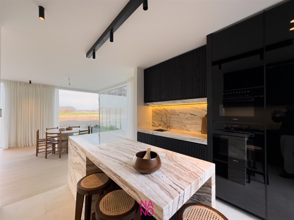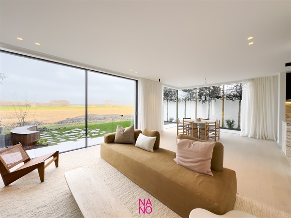 In Knokke, vlak bij het Zoute en het bruisende centrum, prijkt een villa die luxe en rust harmonieus verenigt, op enkele minuten fietsen van scholen, restaurants en boetieks. Tegelijk biedt de ongerepte natuur rondom eindeloze mogelijkheden voor ontspanning. Deze villa uit 2023 (EPC A) ademt vakmanschap. Hedendaags design versmelt hier met de omliggende natuur. De royale inkomhal, voorzien van gastentoilet en met toegang tot de inpandige garage, geeft meteen een voorproef van de verfijnde afwerking. Een verbluffende leefruimte met kamerhoge ramen omarmen de adembenemende uitzichten en integreren de schoonheid van de natuurlijke omgeving naar binnen, een toevluchtsoord waar modern design hand in hand samengaat met de tijdloze charme van deze locatie. De volledig uitgeruste open keuken, verbonden met eetplaats en leefruimte, nodigt uit tot culinaire geneugten. De kelderverdieping biedt een ruime polyvalente ruimte en kan ingericht worden als bar, fitness of ontspanningsruimte (you name it), met apart toilet en technische ruimte. Op de eerste verdieping bevindt zich de masterbedroom met ensuite badkamer, dubbele lavabo, inloopdouche, vrijstaand ligbad en een stijlvolle dressing. Twee extra slaapkamers beschikken elk over een eigen ensuite douchekamer. De tweede verdieping herbergt een grote vierde slaapkamer met eigen badkamer. De inpandige garage biedt veilig onderdak aan uw wagen. Met een EPC-label A combineert deze villa comfort met ecologie. Interesse? Contacteer immo NANO via 050 60 60 78 of info@immonano.be. |
