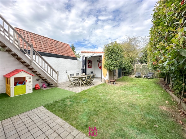 Ontdek deze gezellige woning, ideaal gelegen in een rustige, kindvriendelijke en residentiële buurt. Op wandelafstand vindt u het charmante centrum van Knokke. Het perceel van 247 m² is goed georiënteerd, waardoor u de hele dag door kunt genieten van de zon, van de vroege ochtend tot de late avond. Bij het betreden van de woning komt u in de lichtrijke inkomhal, uitgerust met een gastentoilet en vestiaire, de ruime leef- en eetruimte, voorzien van parketvloer en een sfeervolle open haard, straalt warmte en gezelligheid uit. De stijlvolle keuken is lichtrijk en geeft zicht op uw mooie tuin. Vanuit de keuken heeft u directe toegang tot uw terras en tuin, compleet met een leuke chillspot met geïntegreerde barbecue , ideaal voor gezellige avonden. Tevens is er nog een ruime kelder aanwezig. Via de elegante trap bereikt u de eerste verdieping, waar twee mooie slaapkamers, een douchekamer en een ruime badkamer op u wachten. De badkamer is voorzien van een ligbad, toilet en een dubbele wastafel. De tweede douchekamer met wastafel biedt extra gemak. Aangrenzend aan de master bedroom bevindt zich het ruim zonneterras op de verdieping. Op de tweede verdieping bevinden zich nog 1-2 slaapkamers. De volledig omheinde en volgroeide tuin biedt optimale privacy en is te bereiken via een zijpoortje die uitgang geeft op de straat. Daarnaast beschikt dit pand nog over meerdere parkeerplaatsen en een fietsenberging. Voor alle bijkomende info of bezoek, contacteer ons via 050/60 60 78 of info@immonano.be. |